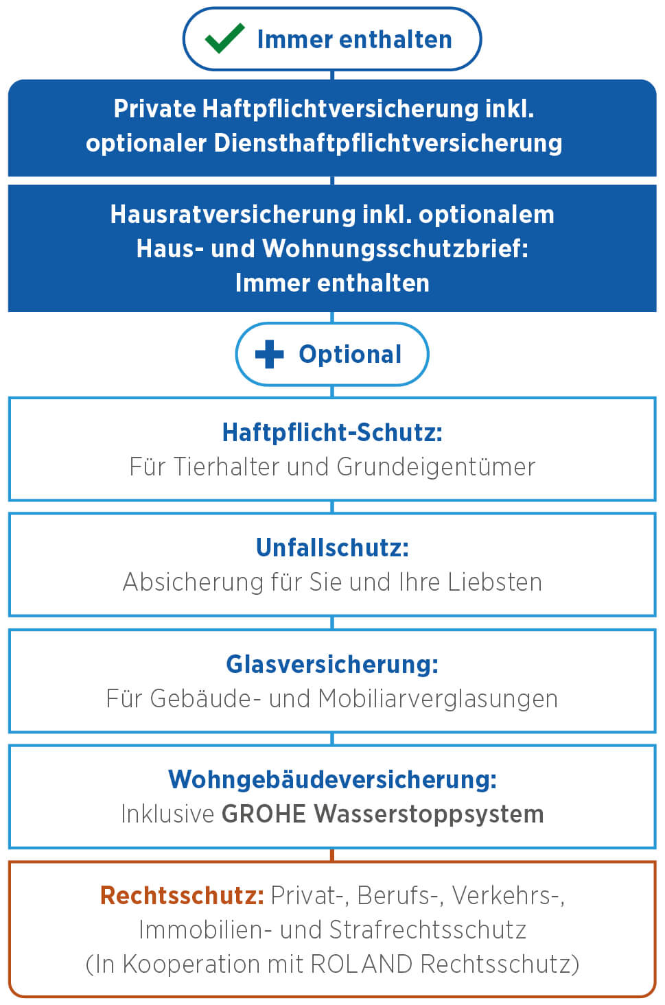 Ganz einfach: Was in den Bedingungen nicht ausdrücklich anders geregelt ist, ist grundsätzlich mitversichert. Natürlich gibt es fest definierte Ausschlüsse, wie vorsätzliche Beschädigung, Konstruktionsfehler oder Abnutzung. Das Besondere ist, dass der Schutz sich somit nicht nur auf Feuer, Leitungswasser, Sturm oder Einbruchdiebstahl beschränkt. Mit der Allgefahrendeckung dreht sich auch die Beweislast im Schadenfall zu Ihrem Vorteil um. So genießen Sie den umfangreichsten Schutz, egal was passiert.